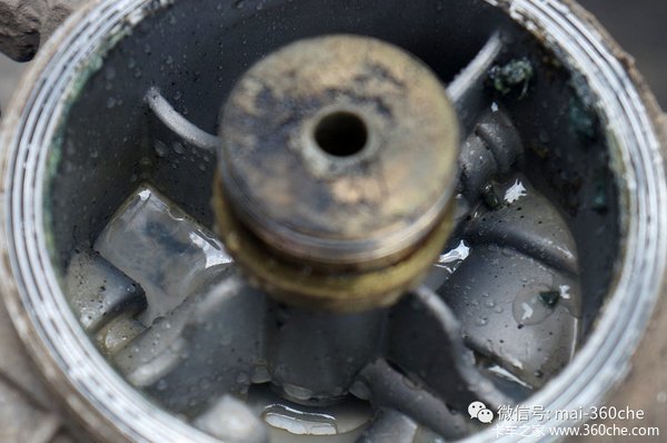 然而,在拆下旧干燥罐之后发现,干燥器总成内部已存有一定量的水,出气孔固定螺栓上也出现了一层黑油,说明干燥罐已经失效了很长一段时间。