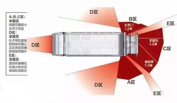 A柱盲区在停车或者启动前的时候影响是最大的,卡车司机在停车和启动时,应该车前车后都环顾一下,确保安全。