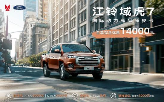 自7月1日-7月31日,用户购买宝典可享6000元现金优惠、发动机终身质保、金融免息、3000元增换补贴、多重惊喜大礼包等五大购车豪礼,至高综合优惠15000元;用户购买域虎7可享5000元现金优惠(AT车型)/2000元现金优惠(MT车型)、3000元增换购补贴、金融免息三重惊喜,至高综合优惠14000元。想要自主创富的大学生们,江铃皮卡诚意为你助力,撸起袖子加油干吧!