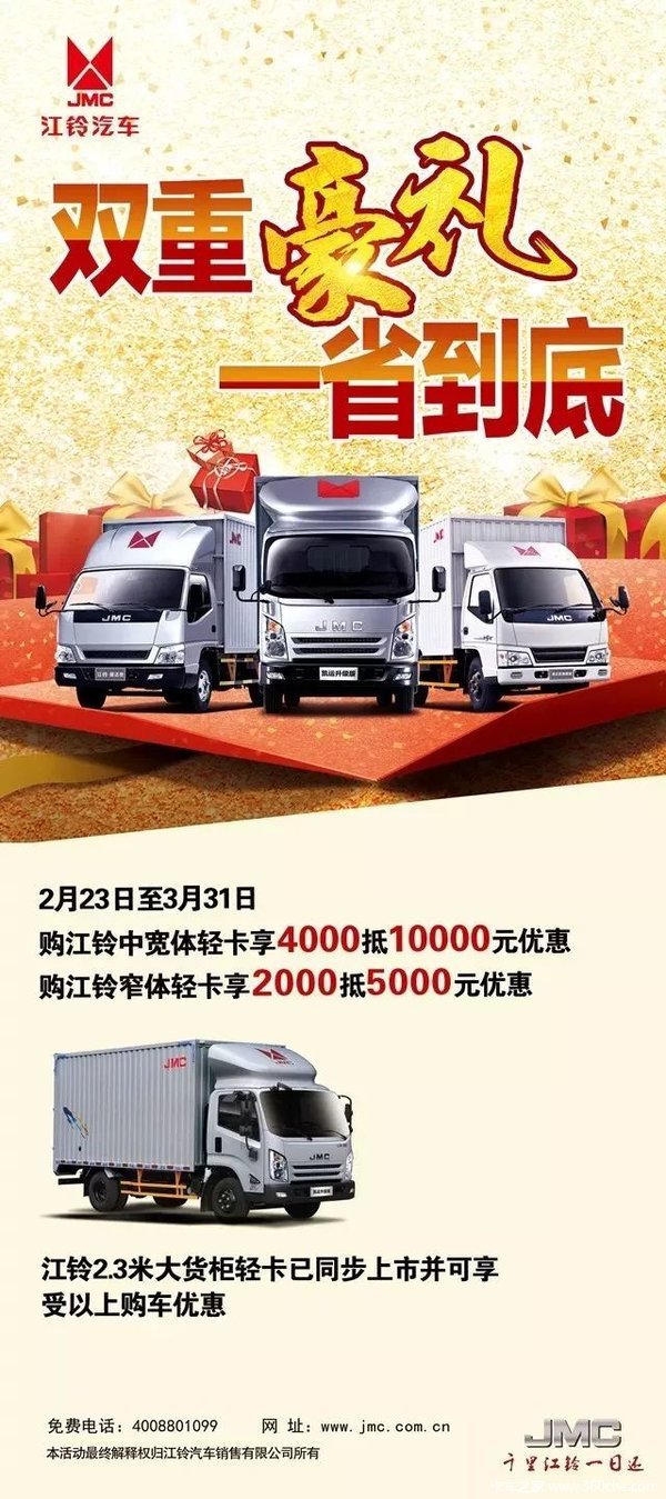 购江铃中宽体轻卡享4000抵10000元优惠