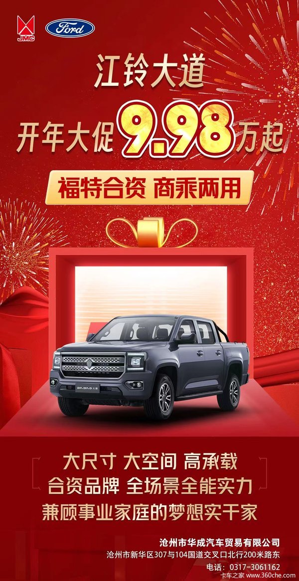 当前位置: 卡车之家 >卡车经销商 > 沧州市华成汽车 > 促销新闻 > 江铃大道开年大促9.98万元起欢迎咨询